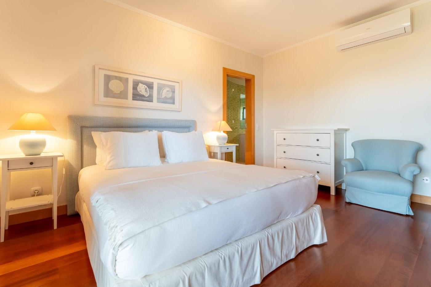 Apartamento com Vista Piscina. This spacious apartment comprises 1 living room, 3 separate bedrooms and 2 bathrooms with a bath and a bidet. Meals can be prepared in the kitchen, which comes with a stovetop, a refrigerator, a dishwasher and kitchenware. The air-conditioned apartment provides a TV, a washing machine, a coffee machine, a seating area as well as garden views. The unit offers 5 beds.
