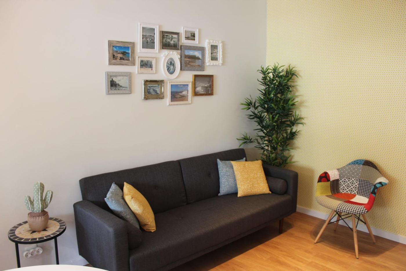 Este apartamento tem 2 quartos, uma sala de estar, uma kitchenette totalmente equipada com frigorífico e máquina de café, e 1 casa de banho com chuveiro e produtos de higiene pessoal gratuitos. Toalhas e roupa de cama são providenciadas neste apartamento.