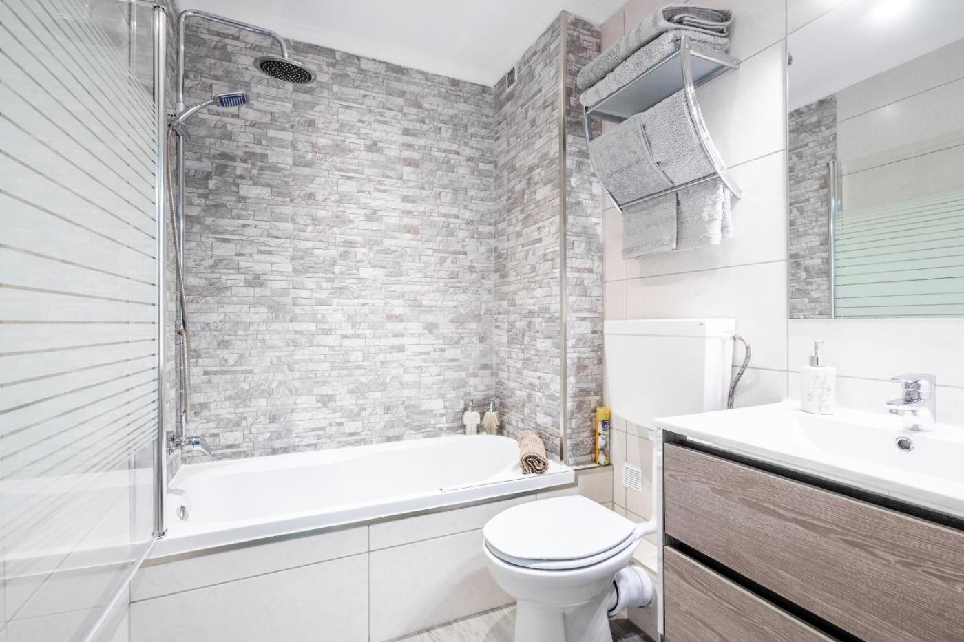 Este apartamento com ar condicionado tem 1 quarto, uma sala de estar, uma cozinha totalmente equipada com frigorífico e máquina de café, e 1 casa de banho com chuveiro e produtos de higiene pessoal gratuitos. Toalhas e roupa de cama são providenciadas neste apartamento.