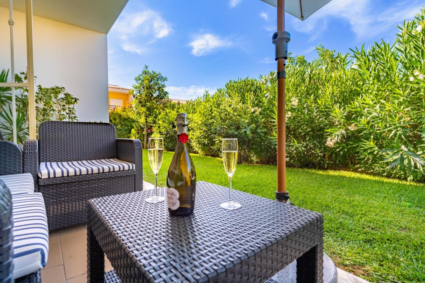Este apartamento com um terraço e vista do jardim apresenta 1 quarto, uma sala de estar, uma televisão de ecrã plano, uma cozinha equipada com frigorífico e máquina de lavar louça, e 2 casas de banho com bidé. Toalhas e roupa de cama são providenciadas neste apartamento.