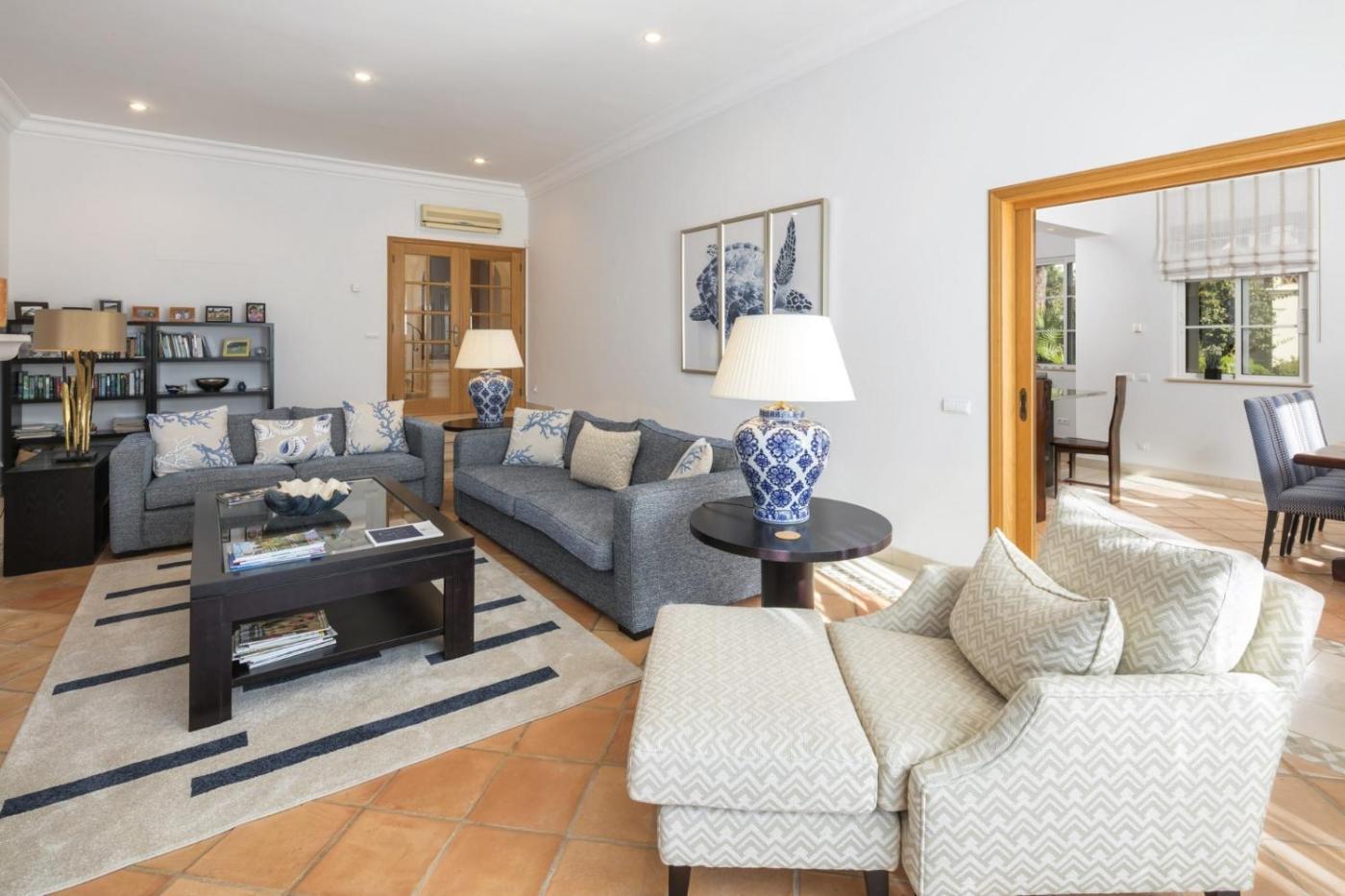 Esta villa com ar condicionado tem 4 quartos, uma sala de estar, uma cozinha totalmente equipada com frigorífico e máquina de café, e 4 casas de banho com bidé e chuveiro. Toalhas e roupa de cama são providenciadas nesta villa.