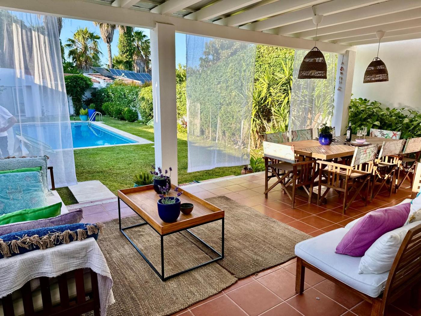 Apresentando vista da piscina, CASA DAS CORES - Sesimbra dispõe de acomodações com uma piscina exterior, um salão partilhado e um terraço, a cerca de 33 km de Campo de Golfe do Montado. O alojamento tem uma piscina privada, jardim, comodidades para churrascos, acesso Wi-Fi gratuito e estacionamento privado gratuito.