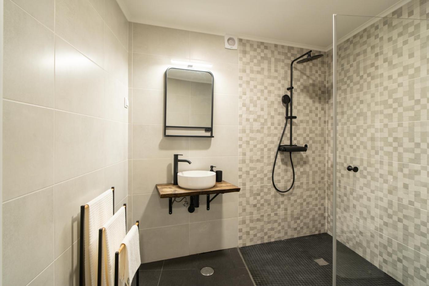 A casa de banho privativa dispõe de chuveiro. Todos os quartos providenciam um frigorífico.